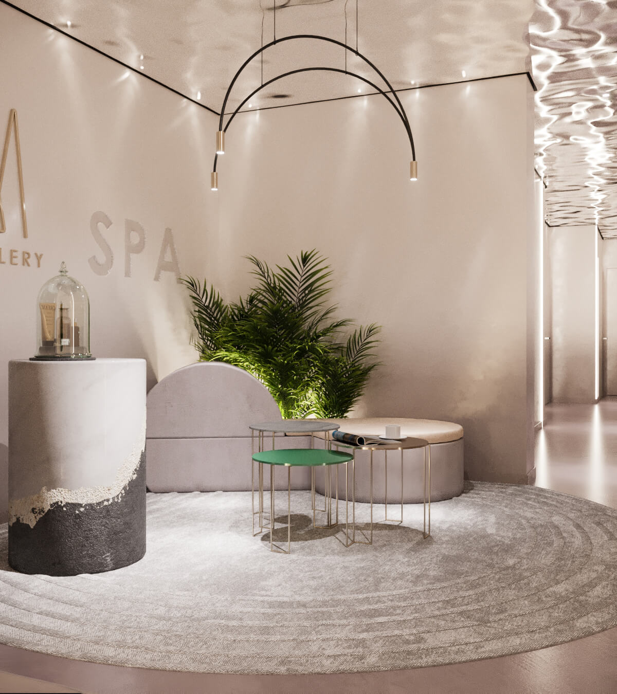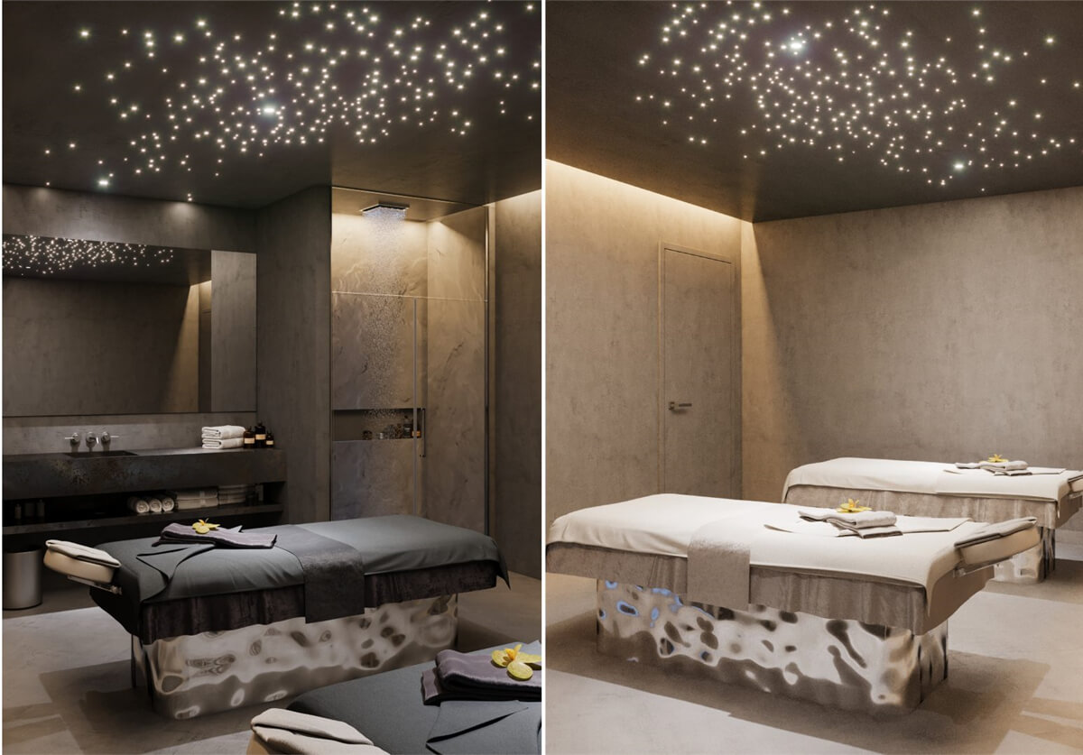 溫暖明亮的顏色鋪在地板,天花板上。墻上裝飾著光與影的效果。因此,空間可以根據(jù)一天中不同的時間,顯示不同的情緒。天花板上神奇的色彩讓舒適感填充整個空間。