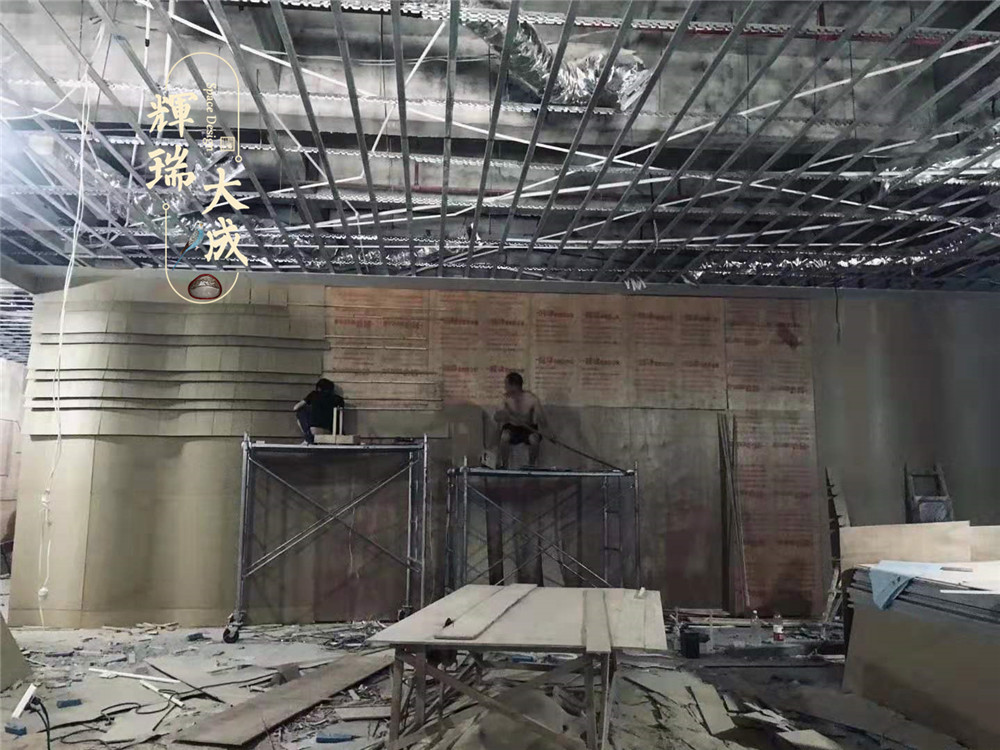 炎炎夏日,輝瑞大成KTV設(shè)計(jì)師去貴州視察工地,順便還可感受不一樣的風(fēng)土人情,每次去,客戶都十分熱情的招待設(shè)計(jì)師,感謝每一位客戶的信任和熱情。項(xiàng)目兩千多平方,投資額也比較大,目標(biāo)是做地方標(biāo)桿,看著已初現(xiàn)面貌的背景墻,一層一層的層板向上疊加,已能感受到高檔大氣的感覺。