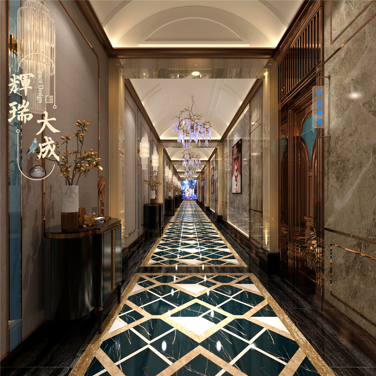 西藏雅礱河商務KTV的過道墻面采用玻璃貼花,帶有歐式感,所有的軟裝飾品的選用和搭配都非常講究。讓人無時不刻感受奢華享受!