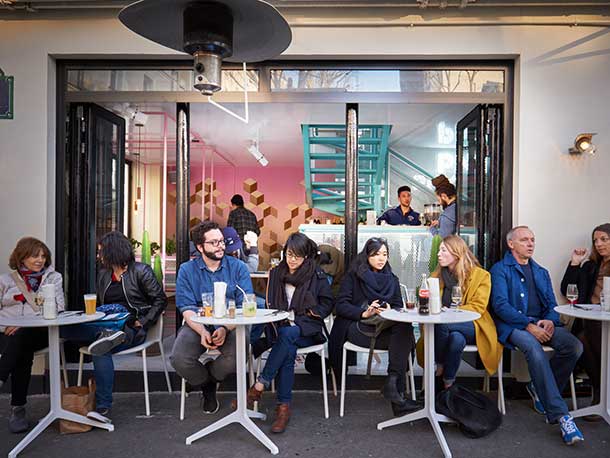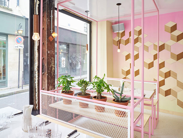 位于瑪黑區(qū)的 PNY是Paris New York漢堡連鎖店在巴黎開設(shè)的第三家分店,由巴黎在地的建筑室內(nèi)設(shè)計工作室CUT Architectures 設(shè)計,約莫是受到心向往之的邁阿密的啟發(fā),在白天的椰林樹影海風和煦與夜晚的華燈璀璨五光十色的影響下誕生了融合美式海濱小屋式快餐店風格的超現(xiàn)實主義室內(nèi)效果。