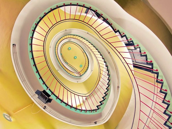 旋轉(zhuǎn)的幾何美感,好像有著特殊的吸引力想要把人吸進(jìn)去。攝影師們最?lèi)?ài)拍這種樓梯了吧。
