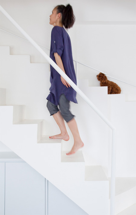 如果你家里也養(yǎng)寵物,或許這個(gè)設(shè)計(jì)能更吸引你。設(shè)計(jì)師07Beach為他的朋友量身打造了這款人寵雙用樓梯,更小的跨度和間距,更多的考慮了小型犬使用樓梯時(shí)的骨骼舒適性。當(dāng)然,前提是你得訓(xùn)練好你的狗狗走這條道,不然可就白費(fèi)心思了。