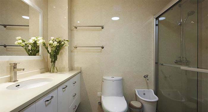 二手房衛(wèi)生間的開窗很難改變,那么可以考慮增強(qiáng)室內(nèi)采光,比如,利用磨砂玻璃、烤漆玻璃、單面玻璃等玻璃材質(zhì)制作衛(wèi)生間與室內(nèi)其他空間的隔斷和推拉門。這樣既可以節(jié)省空間,又提高了衛(wèi)生間的采光,一舉兩得。